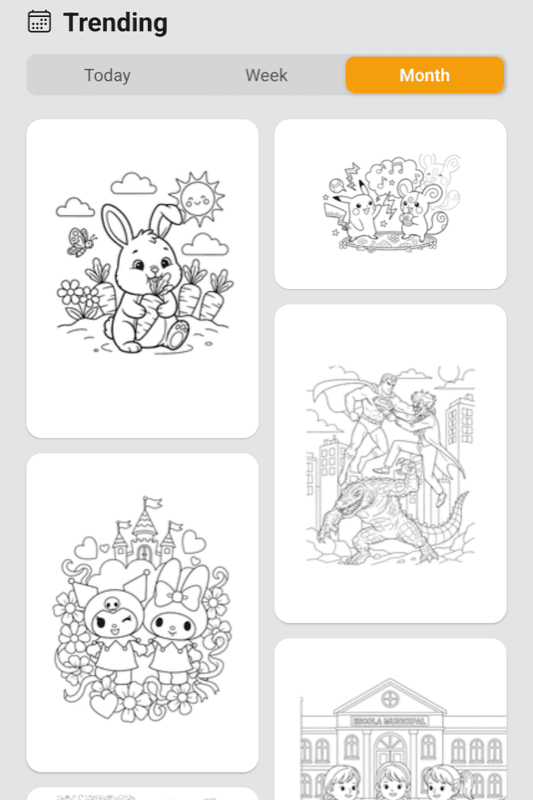 ছোট শিশুদের জন্য মোটা রেখা থেকে শুরু করে বড় শিশুদের জন্য মান্ডালা পর্যন্ত, ColrPage প্রতিটি পর্যায়ের সাথে মানানসই বিভিন্ন রং করার স্টাইল প্রদান করে।